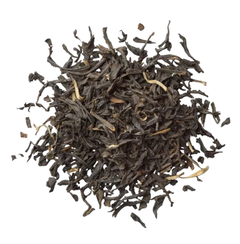 Black tea leaves are dark brown to black, rolled or cut, and oxidized, which gives them a robust, astringent flavor that can vary from malty to fruity depending on the type. It is the basis for many tea blends like Earl Grey and English Breakfast, and contains antioxidants that may support heart health.