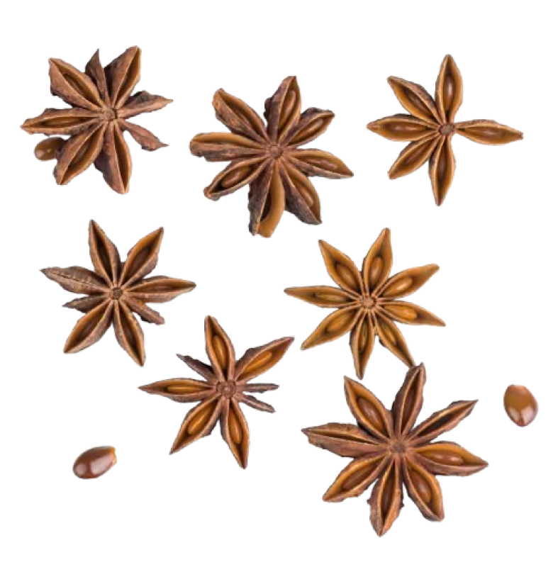 Star anise is a dark brown, star-shaped spice with shiny seeds. Its licorice-like, sweet flavor is used in various traditional remedies and culinary applications, particularly in biryani. Fun fact – the burst shapes in our logo are inspired by star anise!